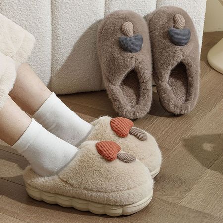 Women's Autumn And Winter Indoor Thick-Soled Warm Plush Cotton Slippers